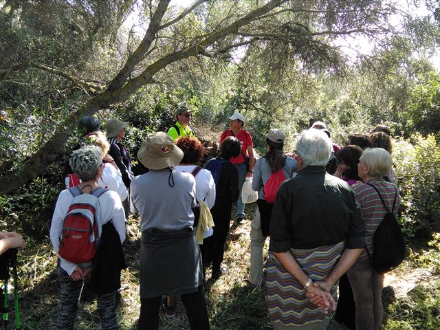 Resum del contingut de l’excursió. Era diumenge de l’Àngel, no era la 3a setmana de mes com sol ser habitual, però és que havia estat Pasqua i aquest cop la nostra activitat coincidia amb altres ofertes d’excursions, açò va fer disminuir el nombre d’assistents. De tota manera el contingut va valer la pena. Des del polígon de Ferreries vam anar al primer tram del camí d’en Kane, cap as Mercadal, fins a la mitgera amb al lloc de la Terra Roja. Ens acompanyava en Xec Pallicer dels Amics del Camí d’en Kane, que ens va explicar com aquest col·lectiu havia netejat aquest tram i quin era l’estat de les negociacions per aconseguir obrir aquesta part fins connectar amb el tram obert del camí d’en Kane en el municipi des Mercadal. En Miquel Marquès va explicar com s’havia portat a terme la recerca documental per aclarir qui tenia la propietat d’aquests trams tancats, de sa Terra Roja i Santa Rita. Sembla que hi ha possibilitats d’acords arran de l’entesa entre administracions i propietats.