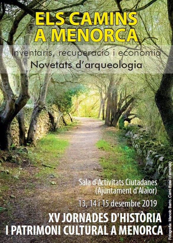 Les XV Jornades d’Història i Patrimoni Cultural de l’illa de Menorca les celebrarem del 13 al 15 de desembre a la Sala d’Activitats Ciutadanes. Es parlarà sobre els camins públics, l’inventari de camins redactat pels ajuntaments, com estan contemplats en el PTI i explicacions sobre el camí d’en Kane i el de Binigaus. Per a dissabte capvespre preparam un seguit d’intervencions sobre temes d’actualitat d’arqueologia.