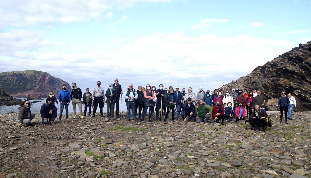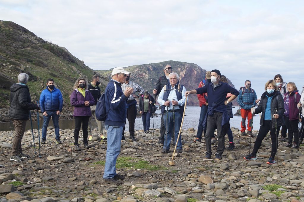 Unes 40 persones ens vam reunir per caminar pels Alocs. Vam deixar els cotxes a l’ample abans de la barrera de Binidelfà. Vam baixar fins la cala dels Alocs, on en Xec Palliser ens van comentar algunes característiques de la planta (aloc) que dona llom al paratge. La geologia de colors vius de la Menorca vermella se’ns oferia en els talls verticals nus de vegetació. Vam pujat per una senderol fins la mitgera d’Alfurí per una zona denominada pla de sa Vinya. Caminàvem per dalt de pendents de valls i turons d’un paisatge natural sense humanitzar, com si no fóssim a Menorca. Vam continuar fins a un camí d’Alfurí que portaria al Pilar, però vam girar pel Canal Pregondo per tornar a Binidelfà.