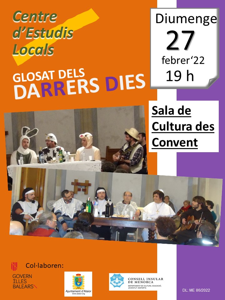 GLOSAT DE DARRERS DIES. DIUMENGE 27 DE FEBRER DE 2022. 19H. SALA DE CULTURA DES CONVENT.
