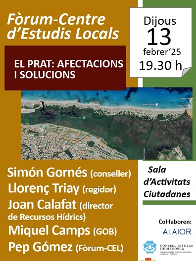 Dijous a la Sala d’Activitats Ciutadanes, 19.30h.  Taula rodona sobre el prat de Son Bou. L’hem titulada afectacions i solucions i hem convidat les tres administracions que hi tenen competències i les dues entitats, el GOB i el Fòrum-CEL, que han destacat en la lluita per les bones condicions del paratge. Del diàleg sincer voldríem que en surtin mesures que facin que els ciutadans estiguin contents amb les responsabilitats de les administracions i de l’acord entre la societat civil i les institucions. No sortir beneficiats d’aquest diàleg sincer per millorar l’estat de coses és donar arguments als ciutadans per abandonar les postures democràtiques i votar falsos redemptors.