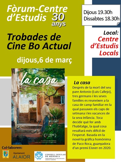 Dijous dia 6 de març de 2025, a les 19.30 h al nostra local. Projecció de la Casa, dins el cicle de Cine Bo Actual.