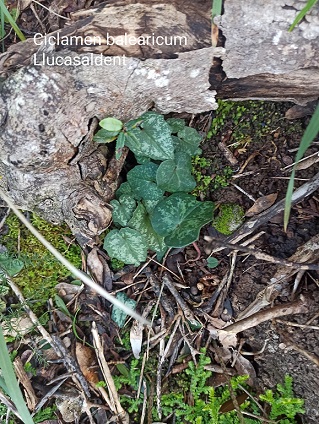 Un endemisme que sembla en franca progressió després d’anys de declivi és la patata morenera (Cyclamen balearicum), que a Llucassaldent creix des del peu del penyal a les voreres del camí. Dona gust veure un endemisme que guanya terreny en tost de perdre’l, segurament gràcies a la desaparició dels elements antropogènics que el limitaven (sobretot la pastura de porcs en llibertat).