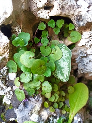 Una altra de les joies del penyalet és la Cymbalaria aequitriloba, un petit endemisme fissurícola que s’aferra a les escletxes més inversemblants. Tota ella és petita i delicada (de fet, la seva germana rep nom per aquesta fragilitat, C. fragilis; es diferencien principalment per la forma de les llavors). En aquestes mateixes escletxes, podem trobar un altre endemisme delicat, Sibthorbia africana, de floretes petites i grogues (s’ha descrit també una varietat de flors blanques). Aquestes dues fissurícoles són tan petites i amagades que ni tan sols han rebut nom popular. Certament, si no les cerques bé és complicat trobar-les.