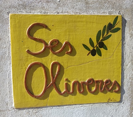 Seguimos, el camino se bifurca y tomamos la salida a la izquierda. Estemos al tanto para ver la finca Ses Oliveres, a la derecha con un distintivo cartel, aunque los olivos no se ven desde nuestro camino.