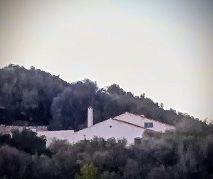 Seguim tot dret, abandonant la comoditat de l’asfalt i entrant per un camí de pedra que acaba a s’Hort d’en Rellotge. Però abans, passarem al costat de cases que no es veuen, amb horts tampoc visibles.