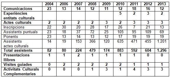 Estadístiques de les Jornades d’Història Local i Patrimoni Cultural a Menorca (2004-2013)