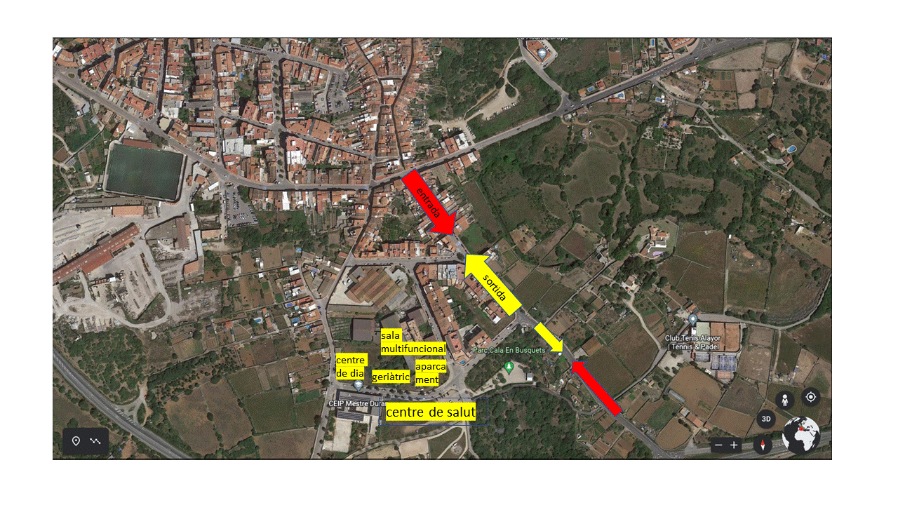 Gràfic de la dificultat de la connexió entre els equipaments prevists a la barriada i la resta del poble. Tot es concentraria en el semàfor que tornaria a ser un punt conflictiu. Demostra la poca planificació municipal i que les decisions són més interès de partit de termini electoral que una valorització real de la barriada.