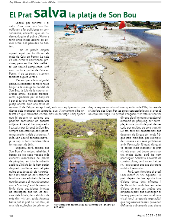 Article d’agost de 2023 en què analitzàvem el que està passant actualment amb el Prat de Son Bou.