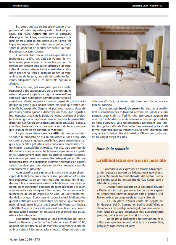 Octubre i novembre de 2024 vam tractar a S’Ull de Sol el futur de Cas Corbo. Aquí teniu els dos articles publicats a S’Ull de Sol.