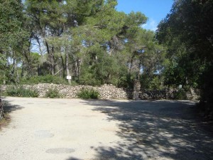 Bifurcació a 1 Km. El Camí de Binimarzoc continua per la dreta i a l’esquerra comença el Camí d’en Russi. A la fotografia es pot observar una ratlla de terme (construcció en pedra) que marca el límit entre el T.M. d’Alaior i el T.M. des Mercadal.